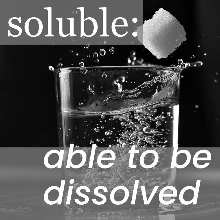 Learn SOLUBLE, a word with utility in science but also in everyday activities!
