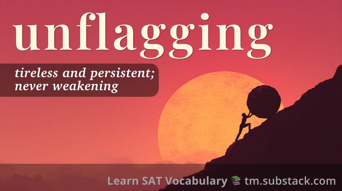 Tip: “flag” can mean to grow tired or lose strength, so unflagging literally means un-tiring. Think of a person whose internal flag never drops.